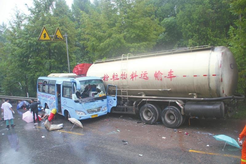 昨日,巴中迎来了持续多日高温后的第一场雨,昨日下午3时许,省道202线巴中市巴州区水宁寺镇境内发生一起惨烈的交通事故,一辆满载乘客的中巴车与一辆罐车迎面相撞,造成6人死亡14人受伤。