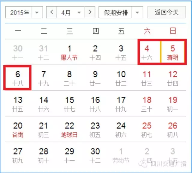 2015年清明节高速免费通行时间:4月4日0时至4月6日24时,共三天。